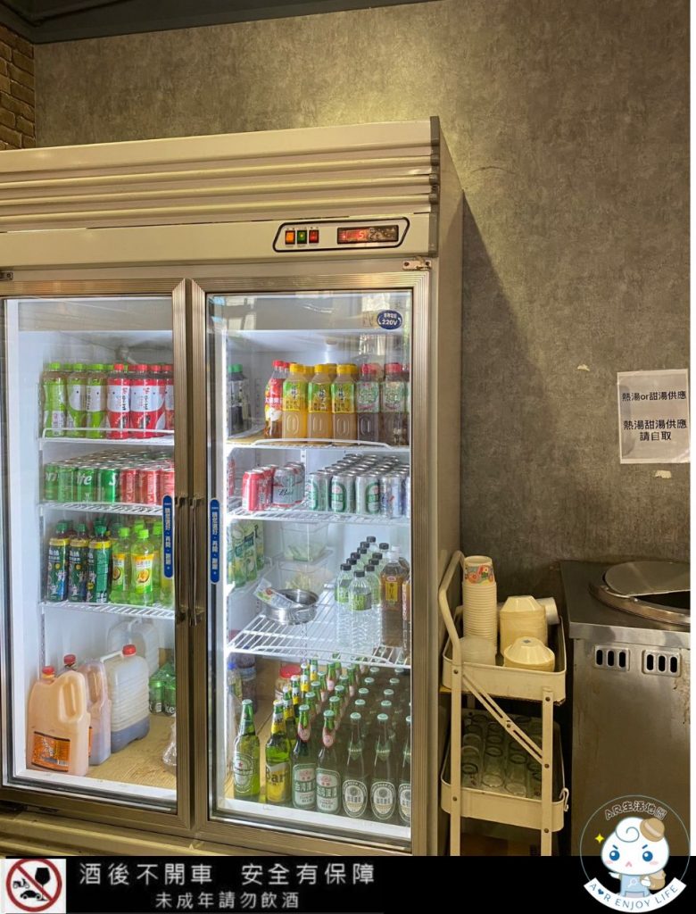 凡到店內用餐的,店家有免費招待(白飯/湯)供客人取用,於湯區旁設有一櫃飲品區,讓想喝飲品的客人選擇性更多